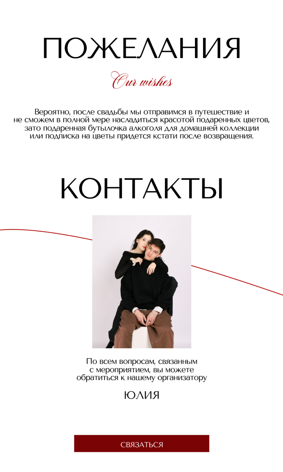 Если вы приглашены с кем-то, можете заполнить вместе! Формат свадьбы — для взрослых, если планируете брать детей, обсудите с молодоженами.